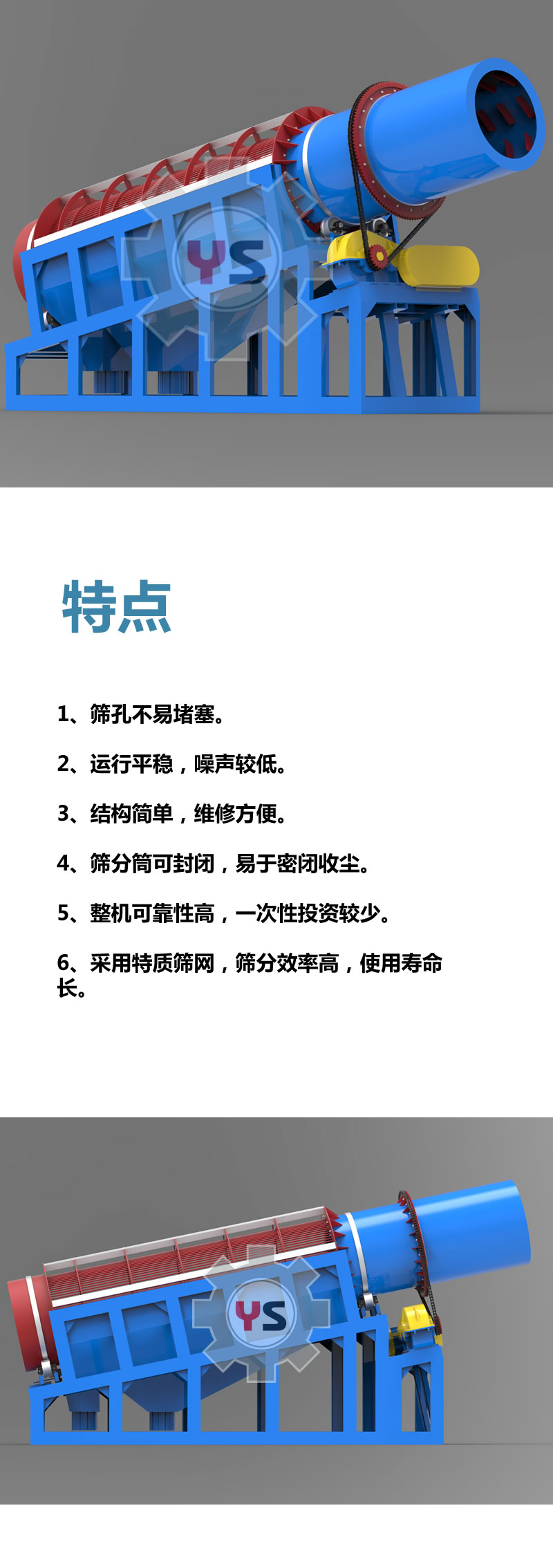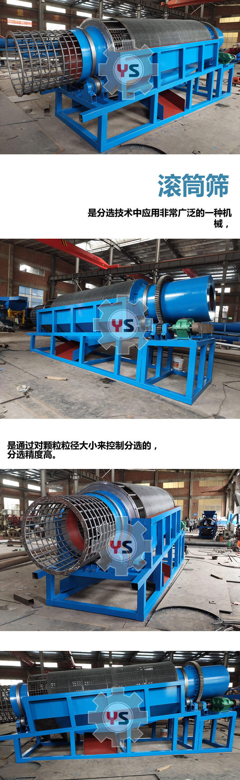滾筒篩是分選技術(shù)中應(yīng)用非常廣泛的一種機械,是通過對顆粒粒徑大小來控制垃圾分選的,分選精度高。滾筒篩的筒體一般分幾段,可視具體情況而定,篩孔由小到大排列,每一段上的篩孔孔徑相同。